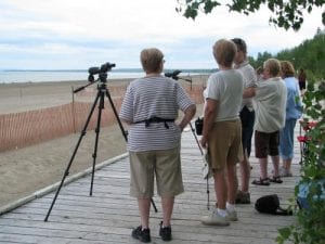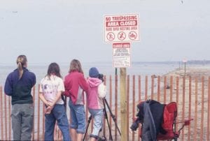 Public Outreach and Monitoring Nests: A key component to the recovery of Piping Plovers is the Volunteer Program. Volunteers are stationed at the site seven days per week, 12 hours per day as they monitor the Piping Plovers and record behaviour accordingly. They play a key role in providing information to the public about the importance of conservation, ecological integrity, and the protection of species at risk such as the Piping Plover.